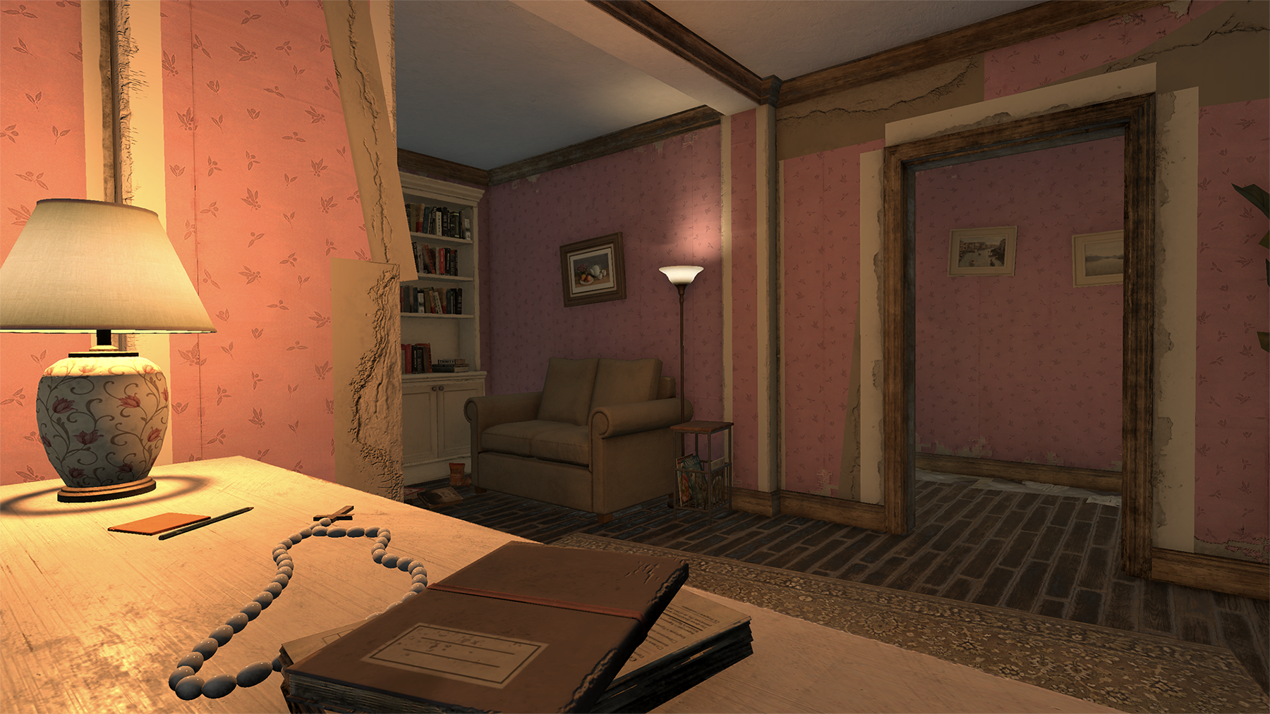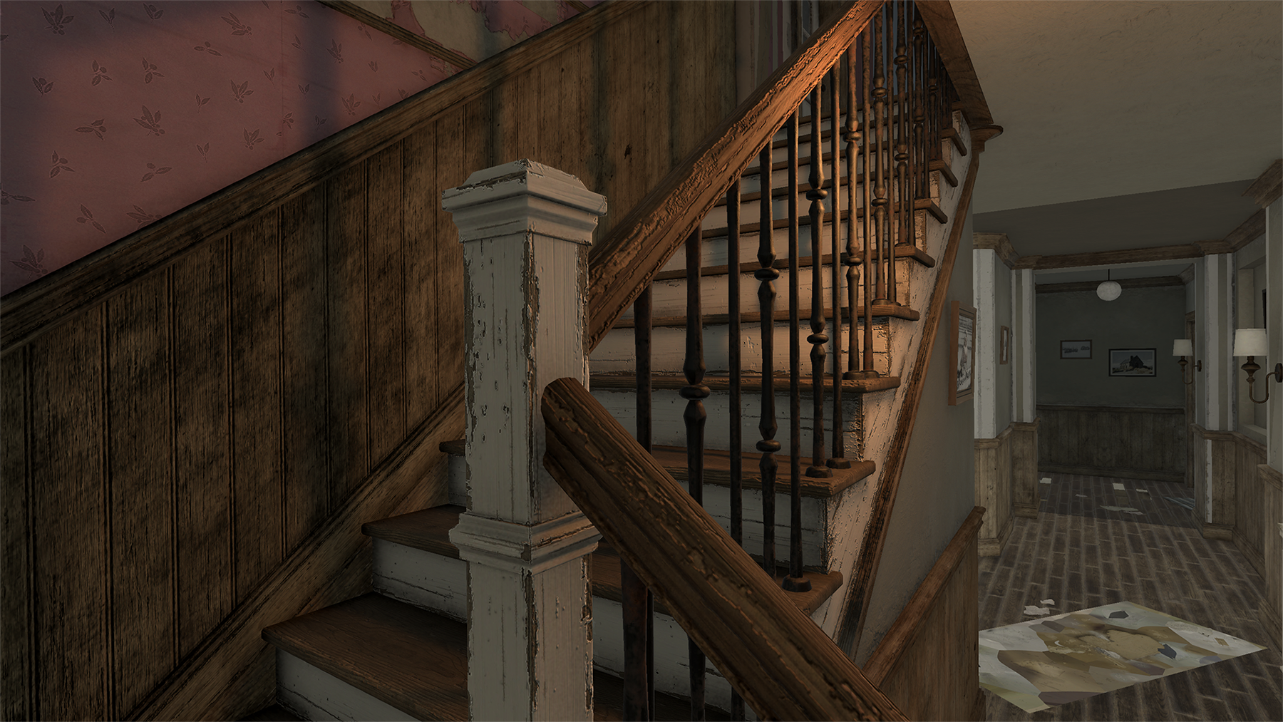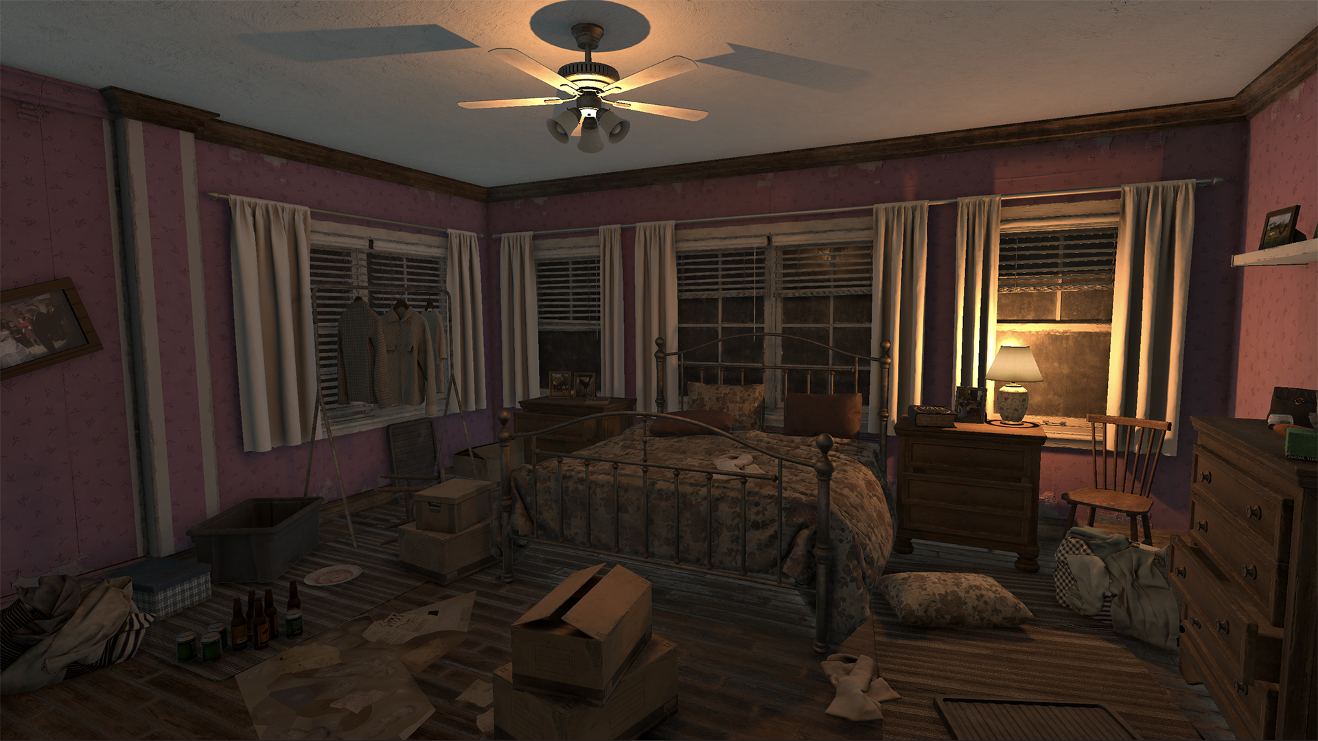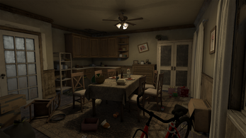 The journey unfolds inside the house through exploration, environmental storytelling, and object interaction. Diaries, photographs, locked doors, and everyday objects gradually reconstruct the hidden reality behind what once seemed normal.